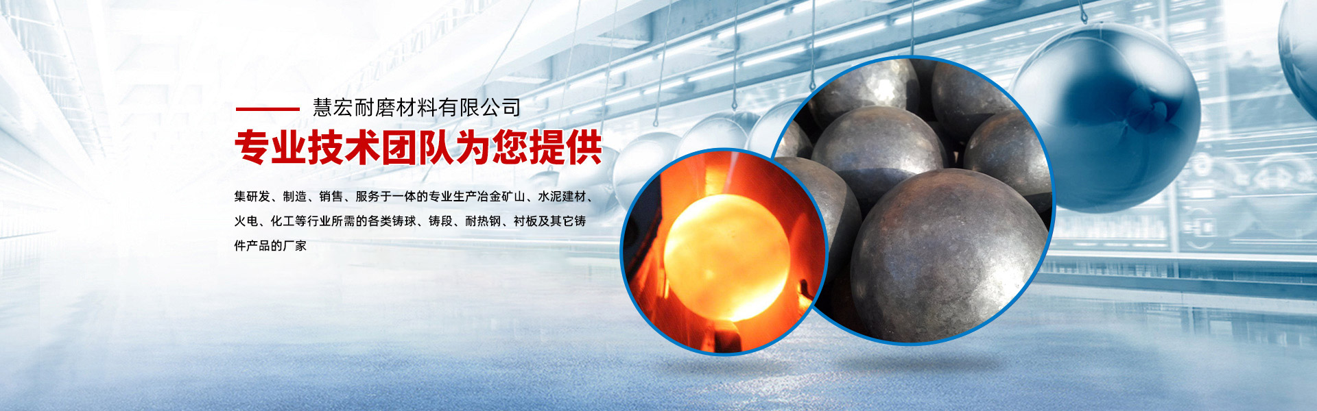 慧宏耐磨是一家集研發(fā)、制造、銷售、服務(wù)于一體的專業(yè)生產(chǎn)冶金礦山、水泥建材、火電、化工等行業(yè)所需的各類鑄球、鑄段、耐熱鋼、襯板及其它鑄件產(chǎn)品的廠家。